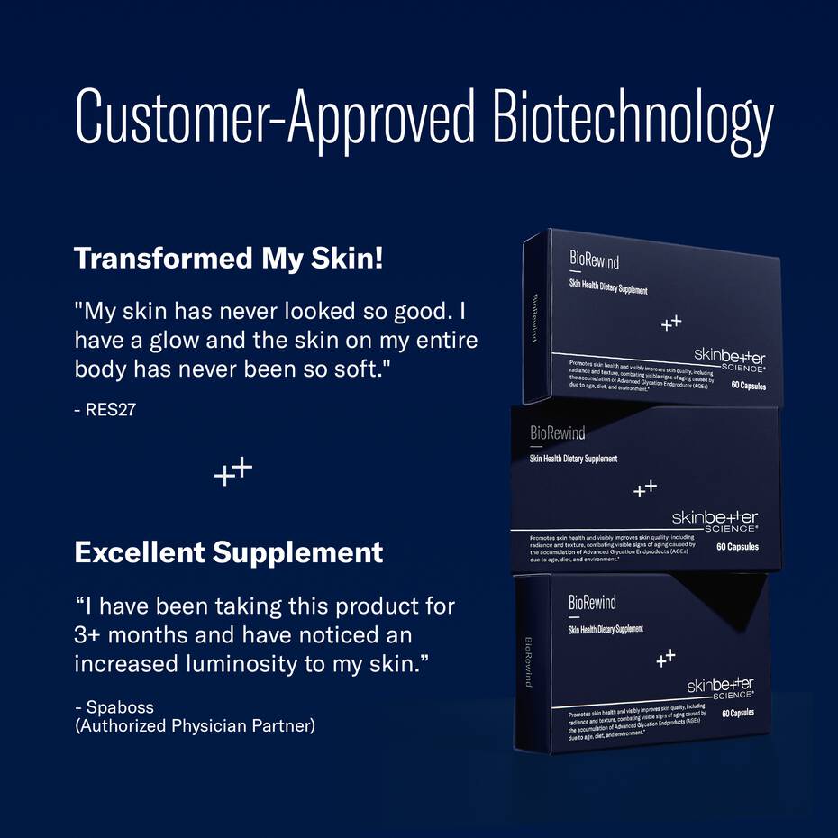 Turn back the clock on aging skin with BioRewind. This breakthrough skin health supplement targets glycation, the process responsible for the formation of harmful byproducts called Advanced Glycation End Products (AGEs). AGEs damage proteins such as collagen and elastin, leading to visible signs of skin aging. BioRewind's exclusive CORExtract™ Biotechnology, featuring Rosmarinic Acid and synergistic antioxidants, was shown to help reverse glycation and reduce AGE formation in clinical testing. Experience visibly healthier, younger-looking skin in as early as 8 weeks.