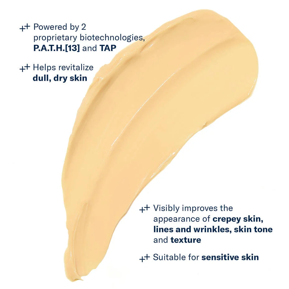 Mystro Revive Renewing Serum rejuvenates the look of skin affected by hormonal decline associated with perimenopause and menopause. Formulated with P.A.T.H.[13] and reenergizing TAP biotechnologies, this nourishing serum targets the visible skin effects of hormonal changes—dryness, dullness, loss of elasticity, and the appearance of lines and wrinkles—to revive, rebalance, and restore skin’s natural luminosity and youthful appearance.